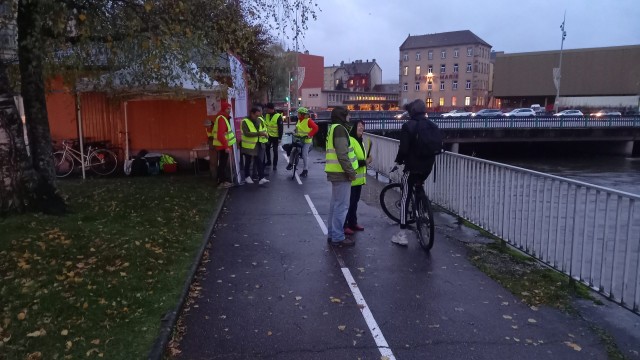 Chaque cycliste qui viendra nous retrouver à l’angle du pont Clémenceau face au marché Fréry entre 17 et 19h pourra bénéficier de conseils sur sa visibilité et son éclairage et participer à un tirage au sort, le gagnant se verra remettre un équipement d’éclairage complet